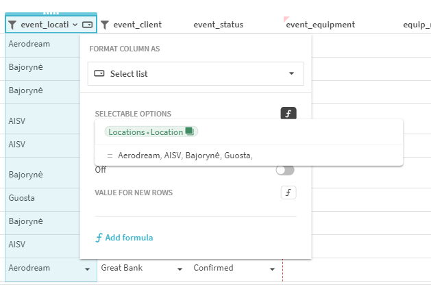 Dear @Ander, thank you once again. I have analyzed the proposed solution but to be frank, from what I see, - it takes more effort than alternative - manually add new row and select event name. Therefore I think I should then focus more on optimizing that and finding a way to represent reserved/booked equipment properly. Here is the way I see it: